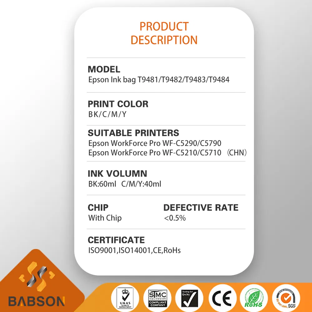 | Compatible for printers | Epson WorkForce Pro WF-C5290/C5790; WF-C5210/C5710 (CHN) |