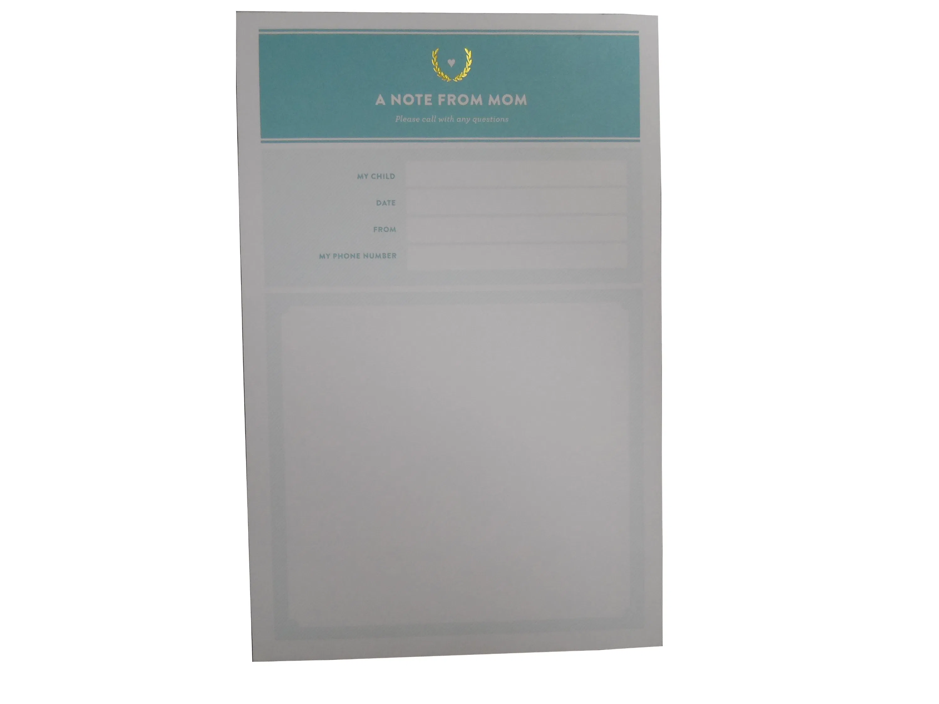 Trimmed size: 14cm x 21cm Material: High Glossy art paper, backing card with 300 gsm C1SWith Easy-take notepads, 75 sheetsPrinting: Matte laminated, gold foil stampingPacking: shrink wrapper plastic bagCustomized design or specification are welcome